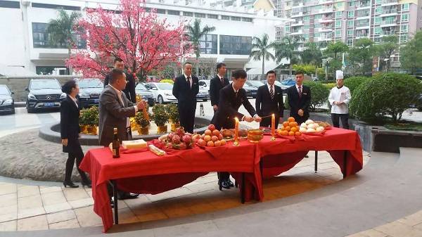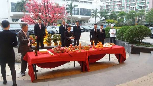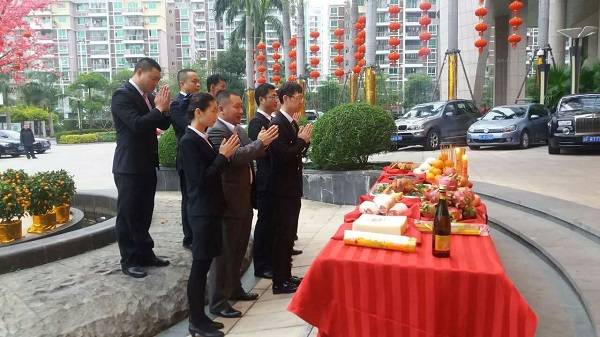 2017年1月31日,大年初四上午,曠遠酒店總經理王之斌攜酒店管理人員于酒店正門舉行盛大的祈福儀式。儀式開始前,酒店餐飲部早早準備好供桌,擺好香爐、供品等。儀式于上午7點正式開始,酒店管理人員在王總的帶領下,在供桌前虔誠為曠遠集團、曠遠酒店祈福,祈求新的一年曠遠集團事業蒸蒸日上,曠遠酒店生意紅紅火火,曠遠人身體健康,闔家幸福。